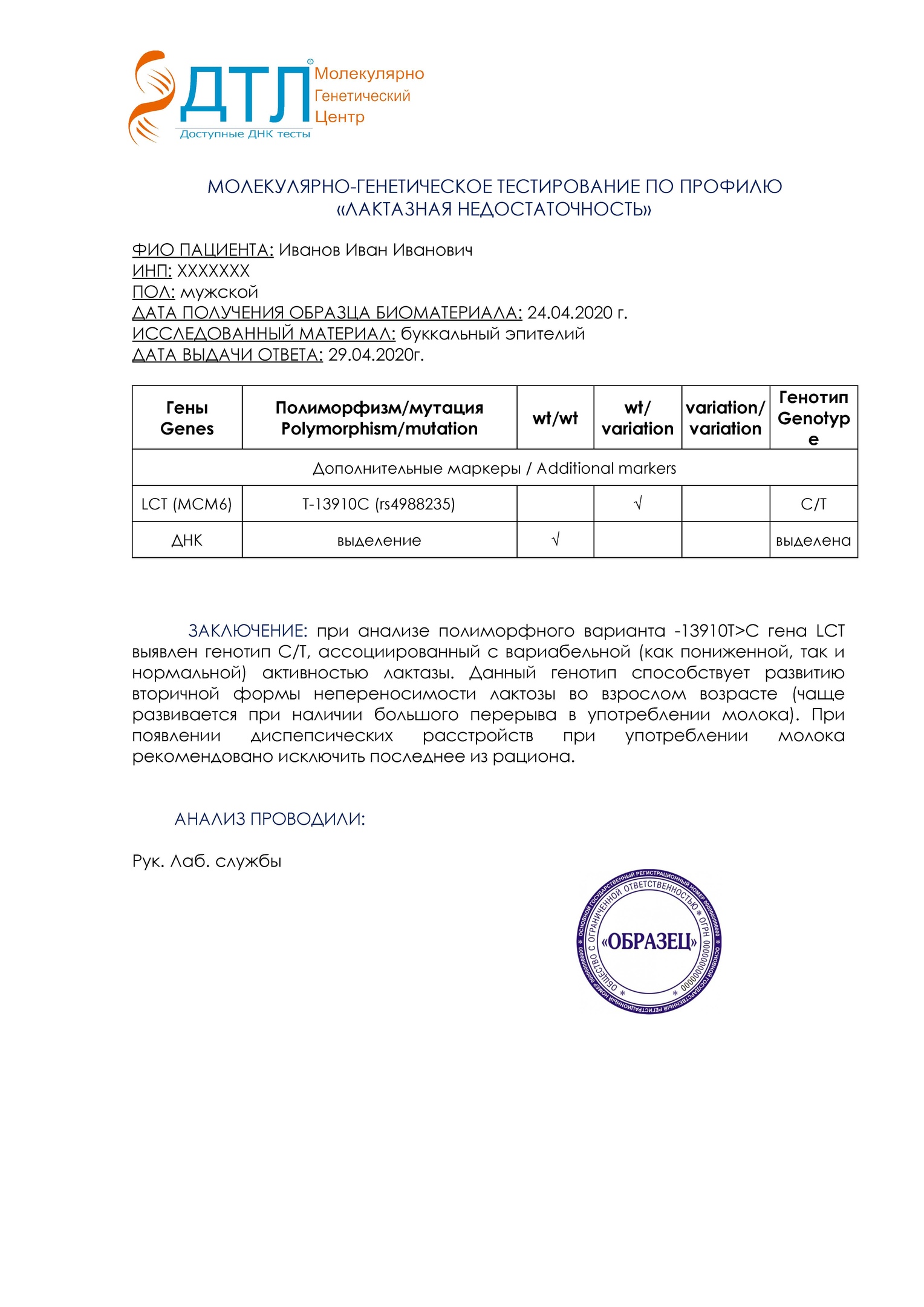 Как сделать ДНК анализ на непереносимость лактозы